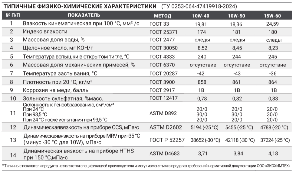 Примечание: *Типичные показатели продукта не являются спецификацией производителя и могут изменяться в пределах требований нормативной документации ООО «ЭКОХИМТЕХ».